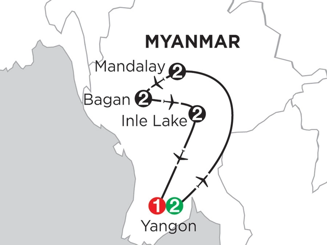 Formerly known as Burma, Myanmar is a magnificent, off-the-beaten-path destination, boasting beautiful Buddha statues clad in gold leaf, historic and well preserved temples, and some of the world’s most hospitable people. Let us show you on this 10-day vacation. Monograms makes it easy for you to venture through Myanmar because we have taken care of your hotel accommodations, transportation, private guided sightseeing, and daily breakfast (plus four lunches and three dinners). You’ll also have access to a Local Host®, who can provide suggestions about what to see and do during your stay.Your vacation begins when you arrive in Yangon. We can arrange transfers from the airport to your hotel, where your Local Host will greet you with a warm welcome and a set of materials to help familiarize you with the city. The next morning, after included breakfast, set off on a walking tour of the city’s famous landmarks, including High Court, City Hall and Sule Pagoda. Along the way you will stop for a cup of tea with the locals. Visit the Reclining Buddha before continuing on to the Shwedagon Pagoda, a national symbol of Myanmar, as the sun sets. Next, after a quick flight to Mandalay, visit Kuthodaw Pagoda and Shwenandaw Monastery, the only remnant of the formed “Golden City” to survive WWII bombings. You will also visit a tapestry and woodcarving workshop and watch the artisans at work, and stop at a gold leaf workshop to see how it is made. Next, visit the Mahamuni Pagoda, the most admired shrine in Myanmar and home to an impressive gold leaf Buddha. It is estimated that approximately six inches of gold has been added to the Buddha through the centuries. Later, you will travel to nearby Amarapura to see the U Bein Bridge, crafted from teakwood from the old royal palace. Take a Sampan ride on the lake at sunset for the best views of the remarkable bridge. Another short flight brings you to Bagan, the capital of Myanmar from the 9th to 13th centuries. At its height as capital it is estimated that 13,000 temples were built in the surrounding plains. Today, around 2,300 remain, making this one of the world’s greatest archaeological sites. After enjoying your included breakfast, you will visit a local textile market, one of the country’s most sacred shrines, the Shwezigon Pagoda. In the afternoon, your time is spent exploring the Bagan Archaeological Zone, where the best preserved monument, Dhammayangyi, still stands. You’ll also visit Sulamani Temple and Ananda Temple, considered to be the most beautiful temple in the area.Then, you will head to Heho, the gateway to Inle Lake, where you will spend two nights at a lakeside resort. You will learn about the famous one-legged rowing technique used to fish and tend to floating gardens, admire the stilted houses that line the shore, visit a silversmith workshop and a cheroot workshop where young girls roll cigars. Your trip concludes with a final night in Yangon.With Monograms, the beauty of this “Golden Land” isn’t out of reach. Actually, it’s easy, because we take care of the details for you! All you have to do is pack your bags and prepare for a life-changing experience.